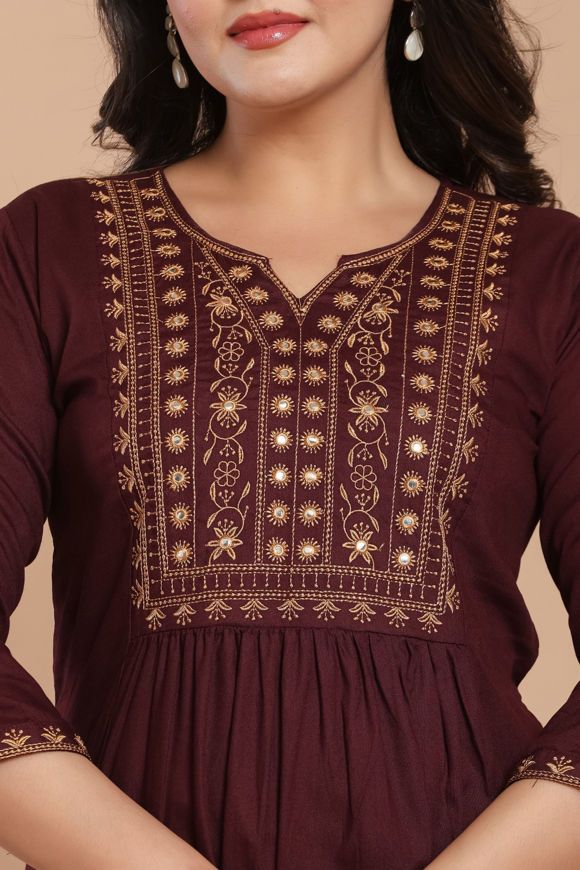 Maroon Cotton Kurti with Mirror Detailing – Summer Ready Style